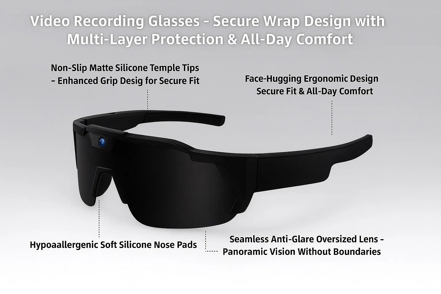 Crafted for everyday freedom and focus, these POV camera glasses combine a lightweight frame with a modern mirrored lens. Theyβre engineered for smooth, hands-free recording, letting you capture your world naturally while keeping your vision clear and your style on point.